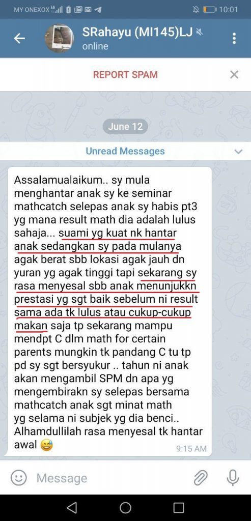 + Sebut sahaja matematik dia rasa best, dan dia sendiri rasa teruja dan tak sabar-sabar nak buat latihan tanpa perlu kita suruh-suruh lagi.